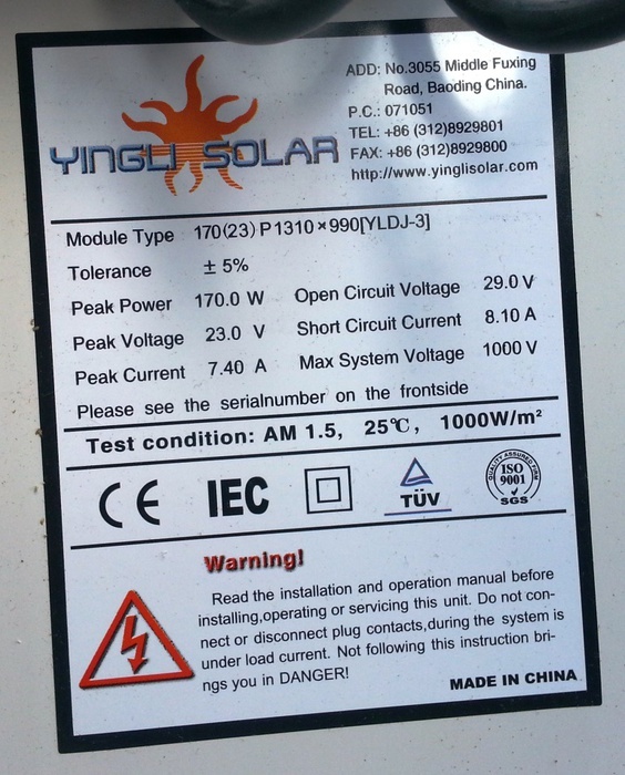 Das Yingli Solar 170(23)P1310x990 (YLDJ-3) ist ein polykristallines Solarmodul mit 170Wp