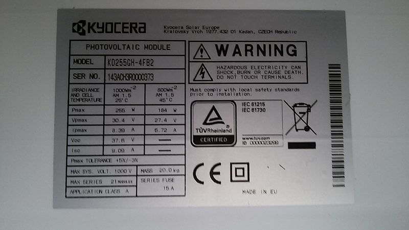 Kyocera KD255GH-4FB2 255Wp / Kyocera KD 255GH - 4FB2 / Kyocera KD255 GH 4FB2 255Wp