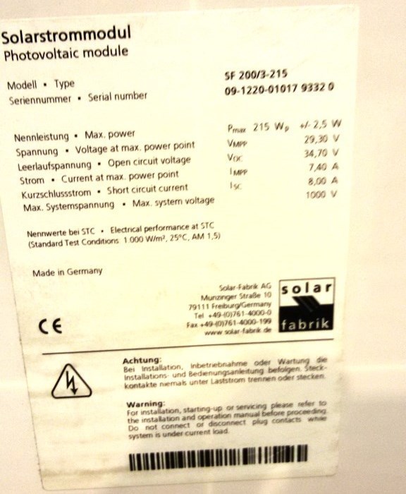 Il Solar Fabrik SF 200/3 è un modulo solare monocristallino con 215Wp