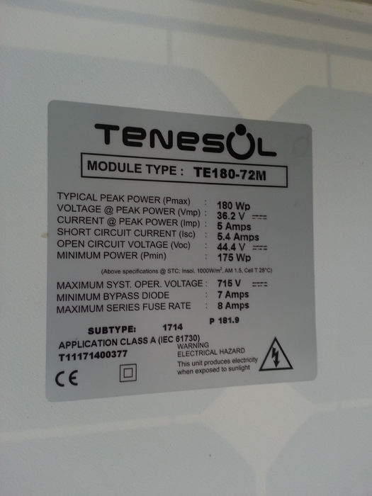 Moduli FV / Mono / Tenesol - TE180-72M 180Wp