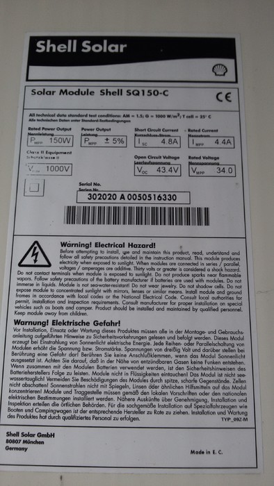 Shell Solar SQ 150-C 150 W / Shell Solar SQ150-C / Shell Solar SQ 150 - C