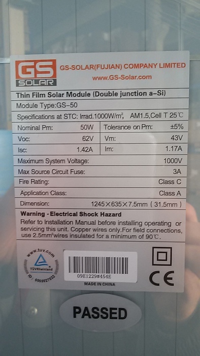 Il GS Solar GS-50 è un modulo solare a-Si a film sottile con 50 Wp