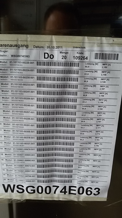 I moduli FV sono i resti. I moduli solari sono tecnicamente in ordine e vengono venduti senza garanzia o garanzia. In caso di garanzie residue, queste possono essere eventualmente fatte valere nei confronti del produttore dall'acquirente. Se il produttore è insolvente, anche queste richieste vengono estinte. Sottolineiamo espressamente che noi, in qualità di venditore, non possiamo dare alcuna pretesa di garanzia o garanzia.