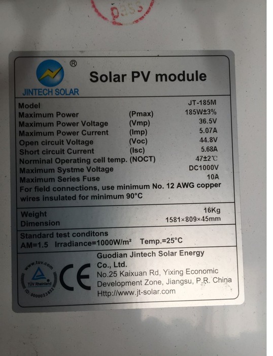 Il Jintech JT-185M è un modulo solare monocristallino con 185Wp