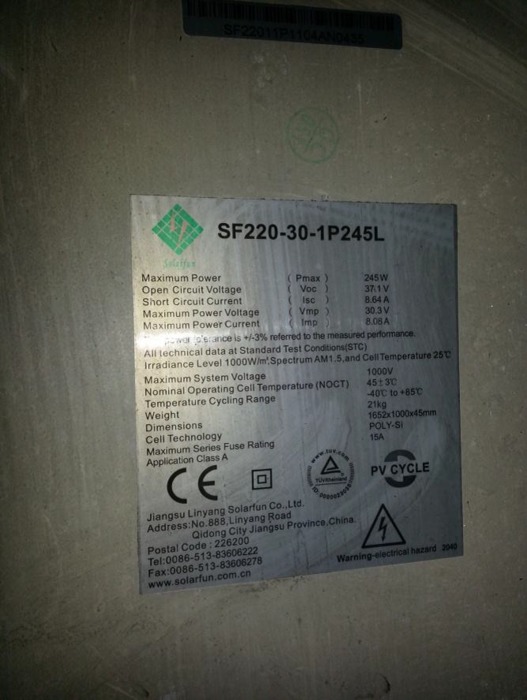 Moduli FV / Poli / Solarfun - SF220-30-1P245L