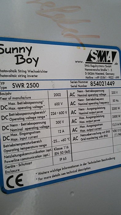 SMA Sunny Boy SWR 2500 - defekt / SMA Sunny Boy SWR2500