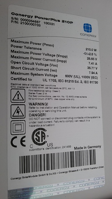 Conergy PowerPlus 210P Black Frame / Conergy Power Plus 210 P