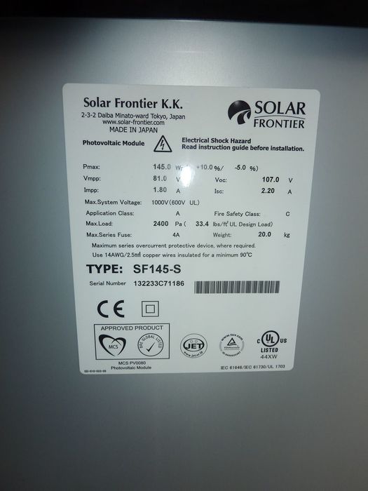 Moduli FV / Film sottile / Solar Frontier - SF145-S