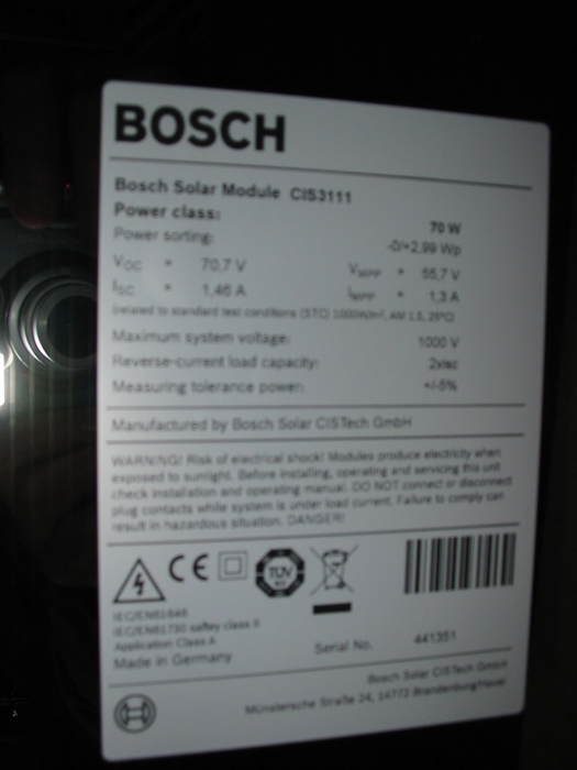 Das Bosch Solar CIS 3111 ist ein Dünnschicht-Solarmodul mit 70Wp.