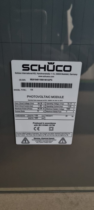 Das Schüco MPE 85 AL 01 ist ein Dünnschicht Solarmodul mit 85Wp