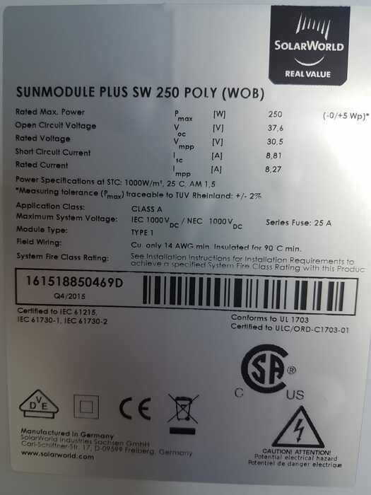 Moduli FV / Poli / Solarworld - SW Plus 250 poly ...