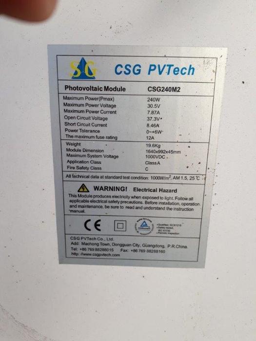 CSG Solar CSG240M2 / CSG240 M2 / CSG 240M2 / CSG 240 M2