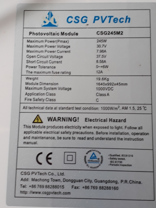 CSG Solar CSG245M2 245Wp / CSG Solar CSG 245M2 / CSG Solar CSG245 M2