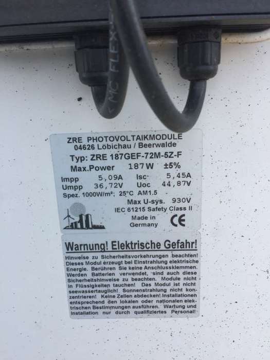 monokristalline Fotovoltaikmodule ZRE 187 GEF 72M 5ZF