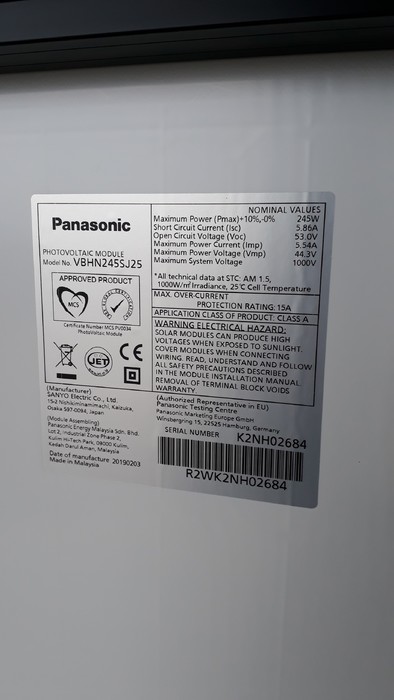 Moduli FV / Mono / Panasonic - VBHN-245SJ25