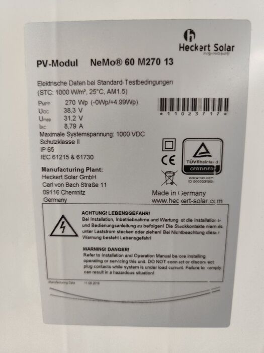 Heckert Solar NeMo 60M 270Wp / Heckert Solar NeMo 60 M 270