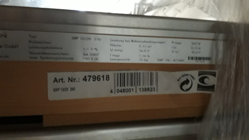 Bei den PV-Modulen handelt es sich um Restposten. Der Verkauf an Unternehmer erfolgt unter Ausschluss jeglicher Sachmängelhaftung. Beim Verkauf an Verbraucher verjähren die gesetzlichen Sachmängelansprüche in einem Jahr ab der Übergabe der Sache. Die Haftung für Schäden aus der Verletzung des Lebens, des Körpers oder der Gesundheit sowie für sonstige Schäden, die auf grob fahrlässiger oder vorsätzlicher Pflichtverletzung beruhen, bleibt unberührt.