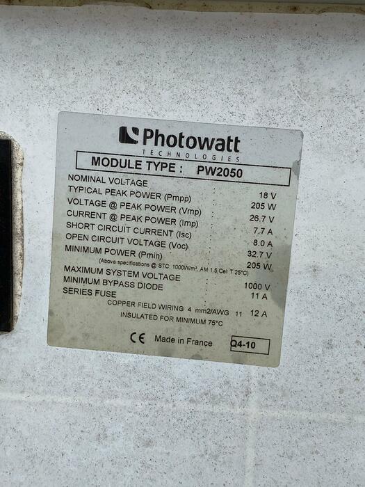 PHOTOWATT SOLAR PANEL 205/210 WATT