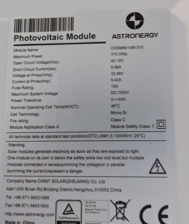 Moduli FV / Mono / Astronergy / Chi ... - CHSM6610M-310