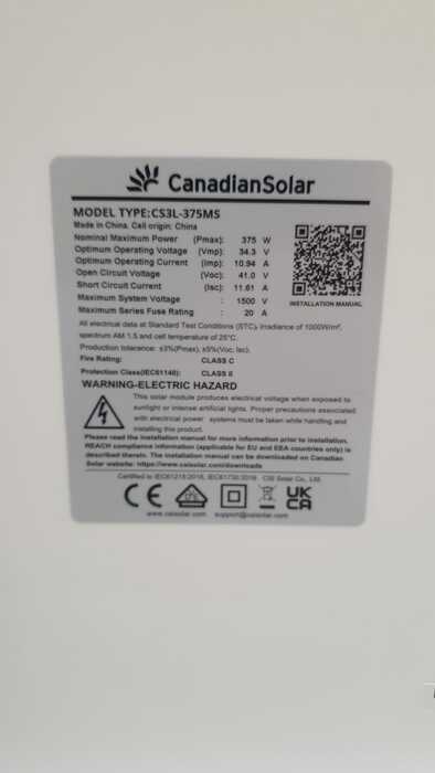 Per ulteriori informazioni tecniche, fare riferimento alle schede tecniche Canadian Solar. Puoi trovarlo sulla homepage del produttore sotto Download o su Internet. (https://www.canadiansolar.com/downloads)