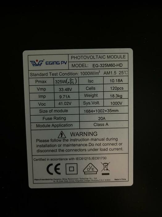 Das Eging EG-325M60-HD ist ein monokristallines Solarmodul mit 325Wp.