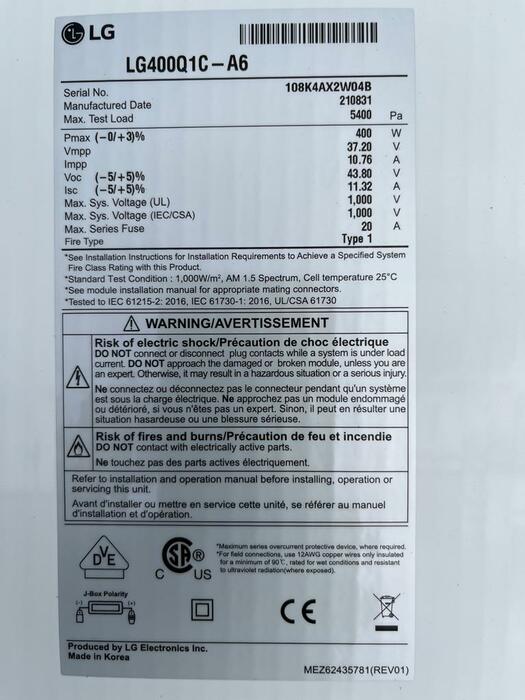 LG NeON R LG400Q1C-A6.BVA 400Wp
