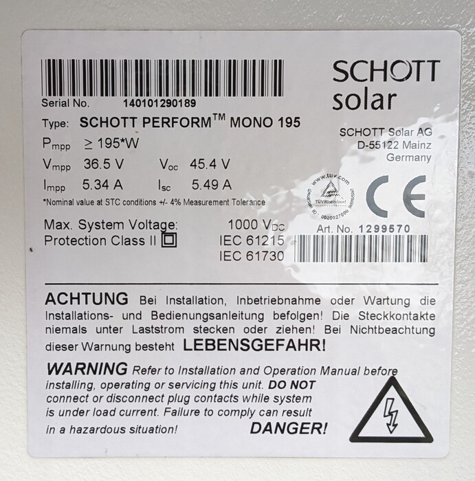 Tipo Kyocera KC95, Siemens SM100/110, ASE 100-GT-FT, MeyerBurger black 385BB, Schott Perform Mono 195, LG360N1C-N5, IBC MonoSol