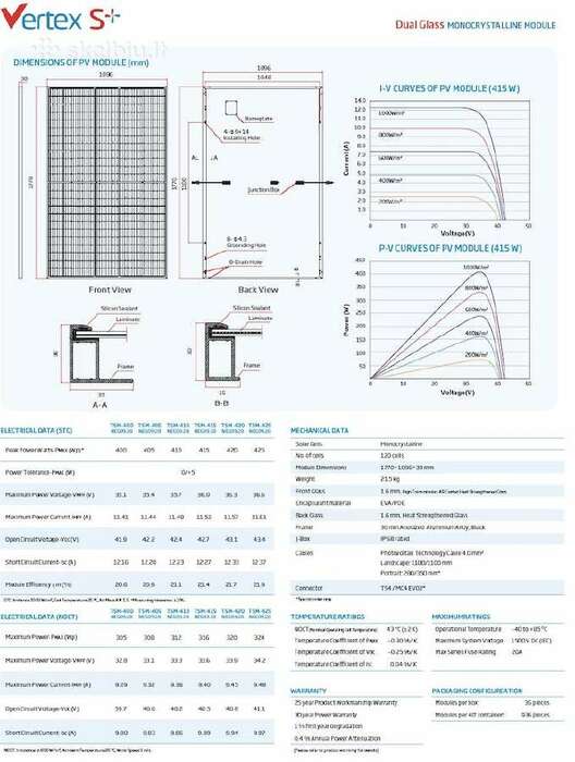 Tipo TSM-NEG9.28 Trina Solar 425Wp Vertex S+ Glas-Glas black frame