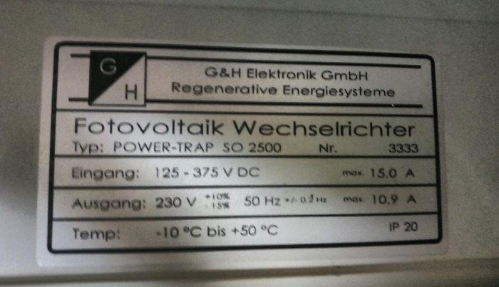 Inverter / Stringa / G&H Elektron ... - Power-Trap SB250 ...