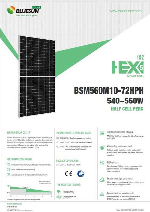 Moduli FV / Mono / Bluesun - BSM560M10-72HPH