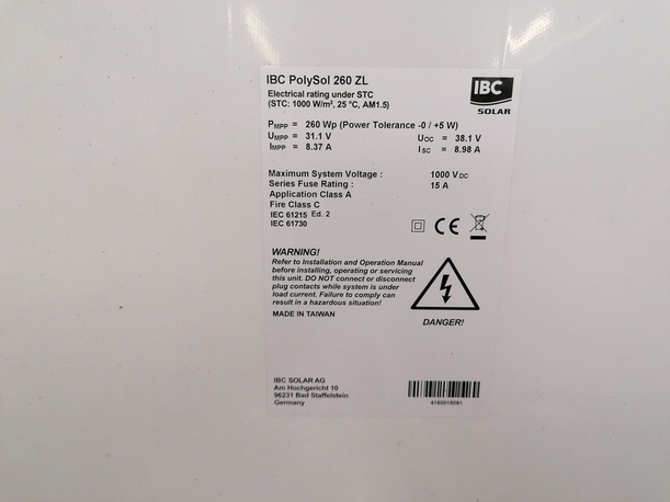Moduli FV / Poli / IBC Solar - IBC PolySol 260 ZL