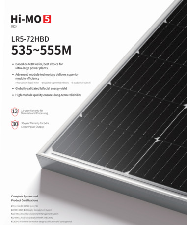Moduli FV / LONGI Solar - LR5-72HBD 550 Bi ...