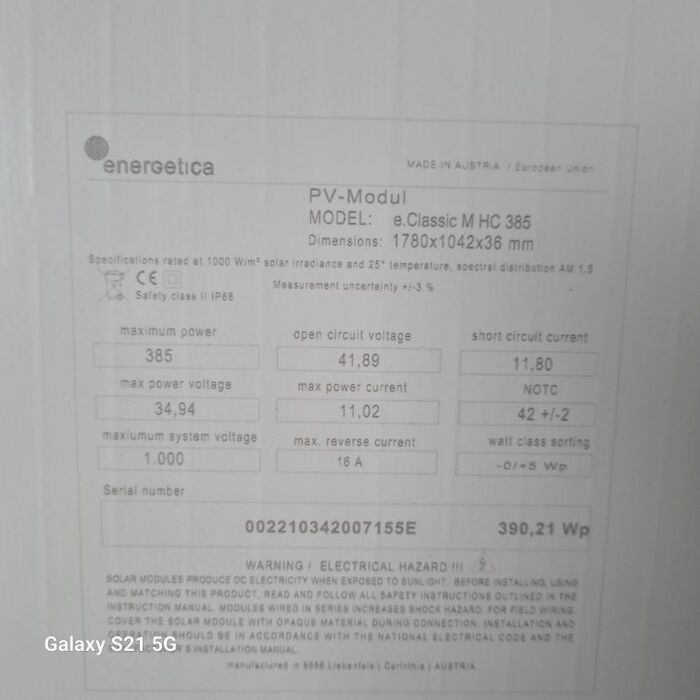 Das Energetica e.Classic M HC ist ein monokristallines Solarmodul mit 385Wp.