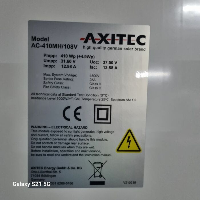 Bei den PV-Modulen handelt es sich um Restposten. Der Verkauf an Unternehmer erfolgt unter Ausschluss jeglicher Sachmängelhaftung. Beim Verkauf an Verbraucher verjähren die gesetzlichen Sachmängelansprüche in einem Jahr ab der Übergabe der Sache. Die Haftung für Schäden aus der Verletzung des Lebens, des Körpers oder der Gesundheit sowie für sonstige Schäden, die auf grob fahrlässiger oder vorsätzlicher Pflichtverletzung beruhen, bleibt unberührt. Wir weisen ausdrücklich darauf hin, dass eine möglicherweise gewährte Herstellergarantie grundsätzlich nur für den Erstkäufer gilt. Einzelheiten bitten wir den diesbezüglichen Angaben des Herstellers zu entnehmen.