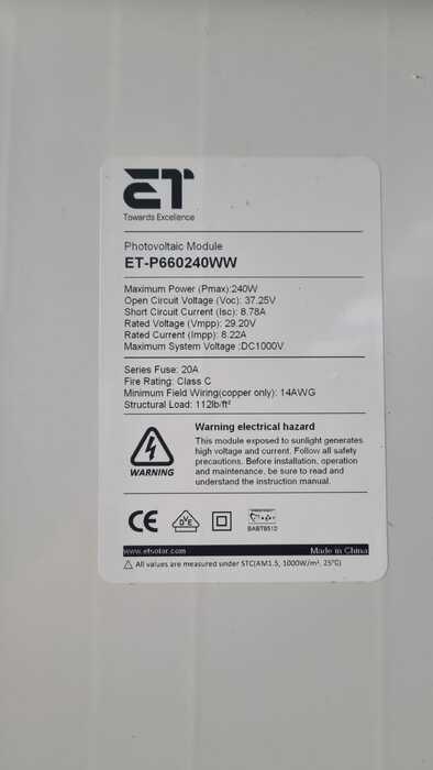 ET-Solar ET-P660240WW è un modulo solare policristallino con 240 Wp