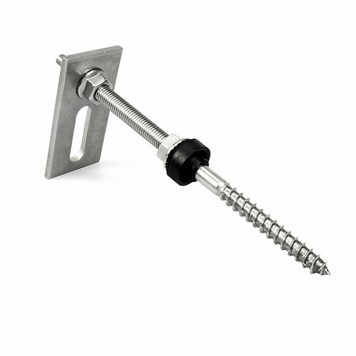 The stock screw is for fastening on the roof to mount your aluminum profile rails, on which the solar modules will then be attached.