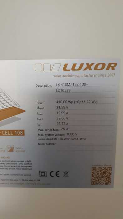 Moduli FV / Mono / Luxor Solar - LX-410M/182-108+