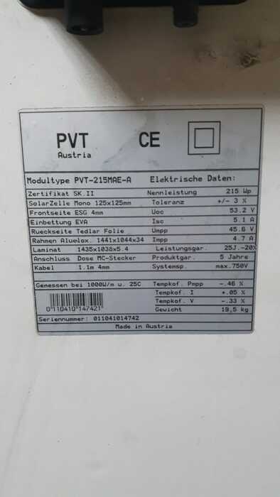 Moduli FV / Poli / PVT Austria - PVT-215MAE-A
