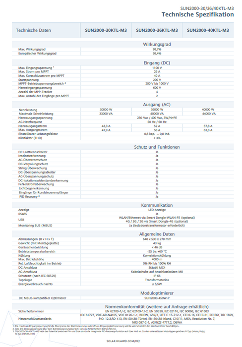 HUAWEI SUN2000 36KTL-M3 Wechselrichter 36kW Solar Photovoltaik