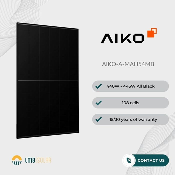 Panel Solar Aiko, 440 W All Black, monocristalino N-Type ABC 108 células (Dual Cell). Cable 1200mm