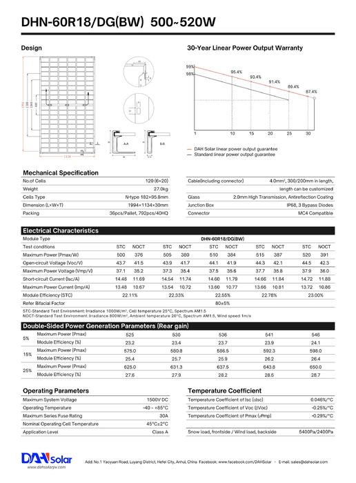 Moduli FV / Mono / DAH Solar - DHN-60R18/DGBW-510W