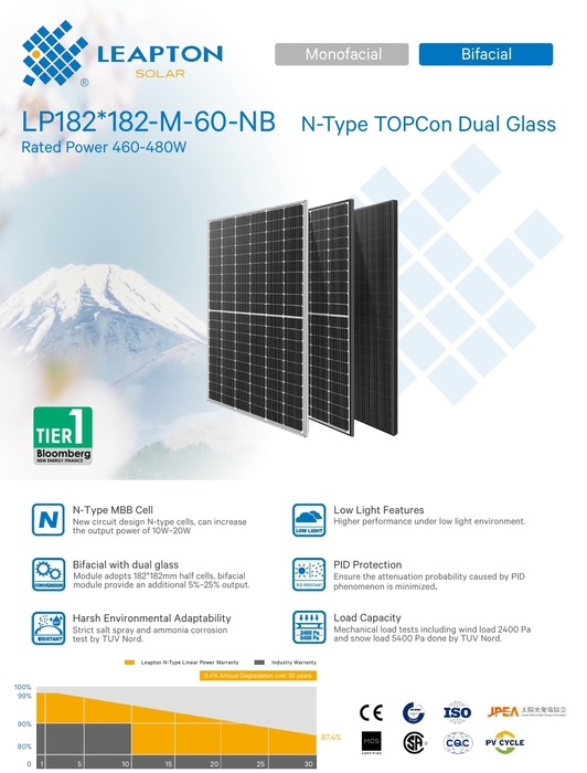 LEAPTON LP182-M-60-NB 480W Full Black / TOPCon / Dual Glass / Bifa ...