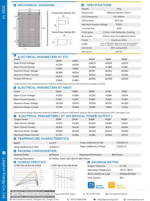 Moduli FV / Leapton - LP182-M-60-NB 500W