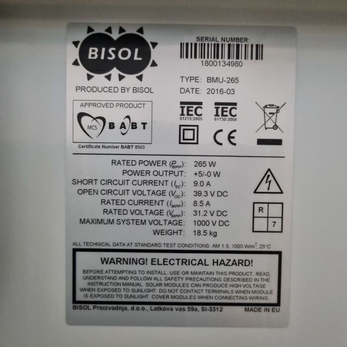 Das BISOL BMU ist ein polykristallines Solarmodul mit 265Wp