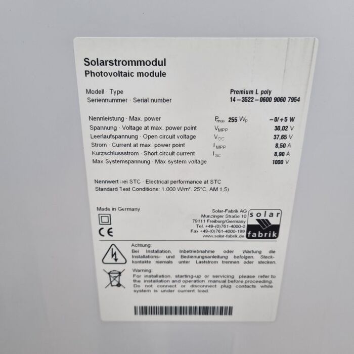 Moduli FV / Poli / Solar Fabrik - Premium L Poly 255Wp