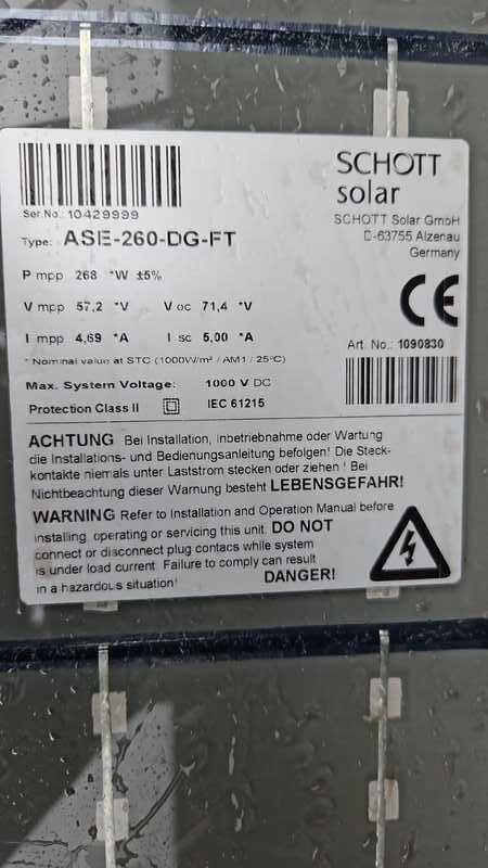 Bei den PV-Modulen handelt es sich um gebrauchte Restposten. Die PV-Module werden ohne Garantie oder Gewährleistung verkauft. Sollten Restgarantien bestehen, können diese eventuell beim Hersteller durch den Käufer geltend gemacht werden. Wir weisen ausdrücklich darauf hin, dass wir als Verkäufer keine Gewährleistungsansprüche oder Garantien geben können. Mit der Durchführung Ihres verbindlichen Kaufes erklären Sie sich damit einverstanden!