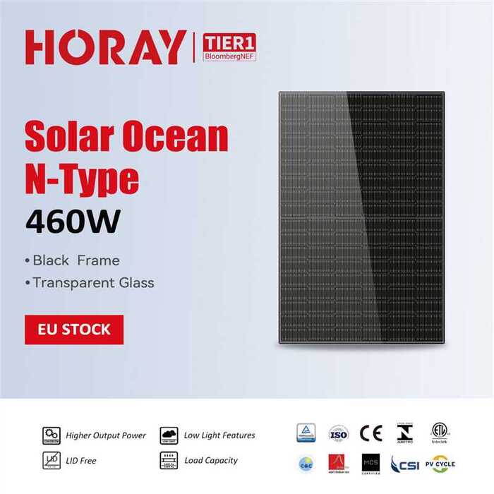 Horay Solar HS460TC-MHC-D Glas-Glas bifazial Photovoltaikmodul N-Type Schwarz Rahmen 460Wp