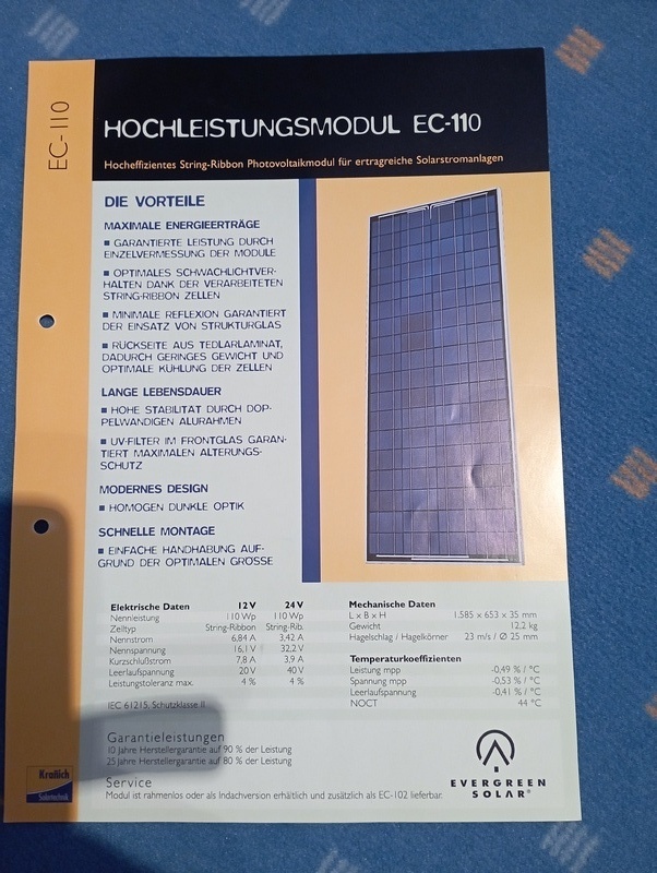 Es sind 230 Module. Mechanische Daten: L 1,585, B 653, H 35 mm.