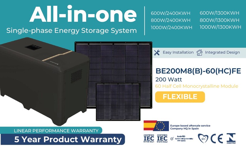 4 x 200W flexible modules + ALL-IN-ONE solution (inverter + storage system)