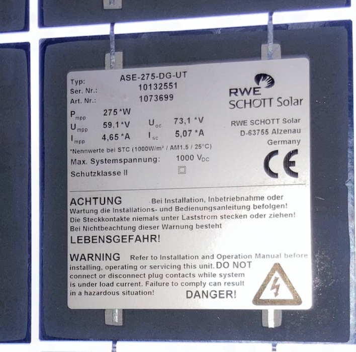 Herstellerfirma hieß 2005 noch "RWE Schott Solar" weil RWE bis 2006 daran beteiligt war.